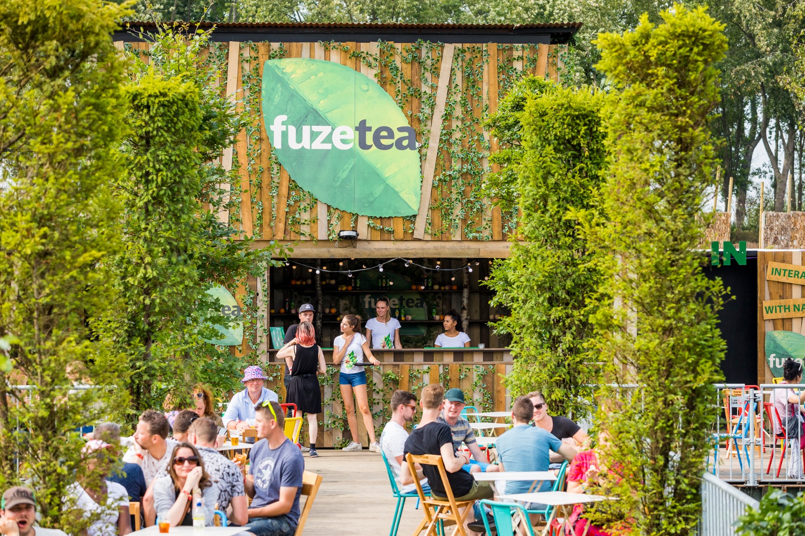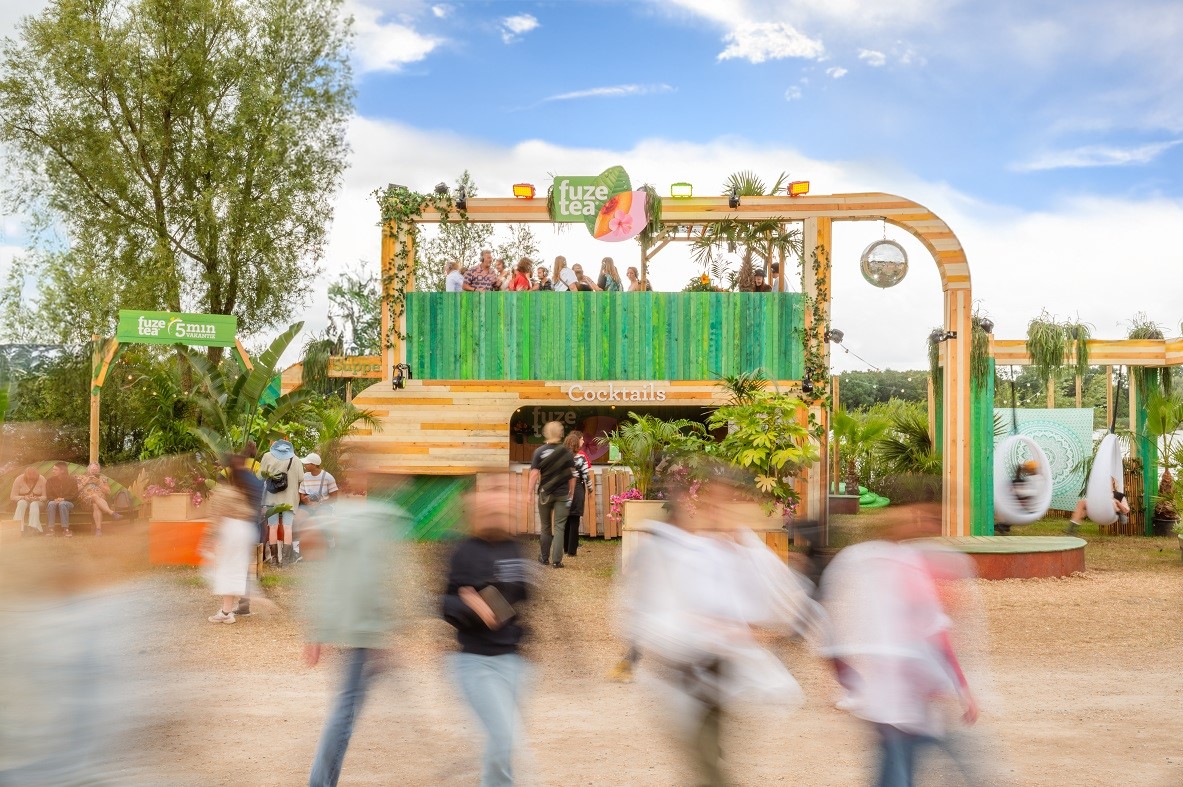 Fuze Tea has been one of our most dynamic productions ever: from sampling at One Direction concerts to an interactive experience at Down The Rabbit Hole, featuring a boat, bar, and sauna designed to create added value for visitors while boosting visibility for Fuze Tea.